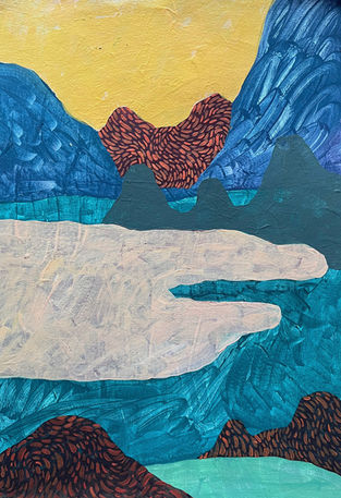 Rather than depicting the landscapes of mountains with definitive panorama held between the earth and sky, I layer colour upon colour to try and create a somewhat organic creation of forms that is fluid and nonrestrictive. Like looking through a magnifying glass upon nature.